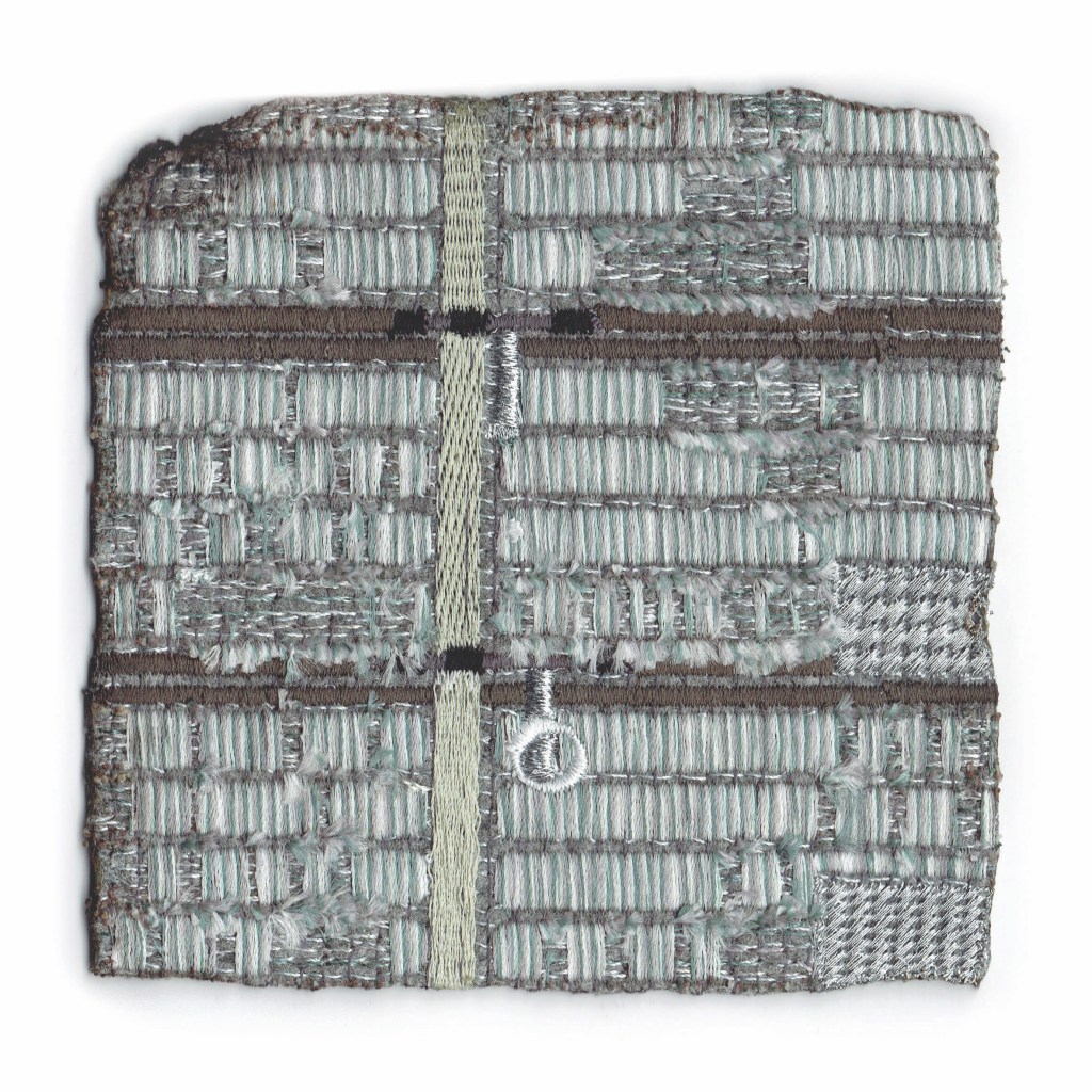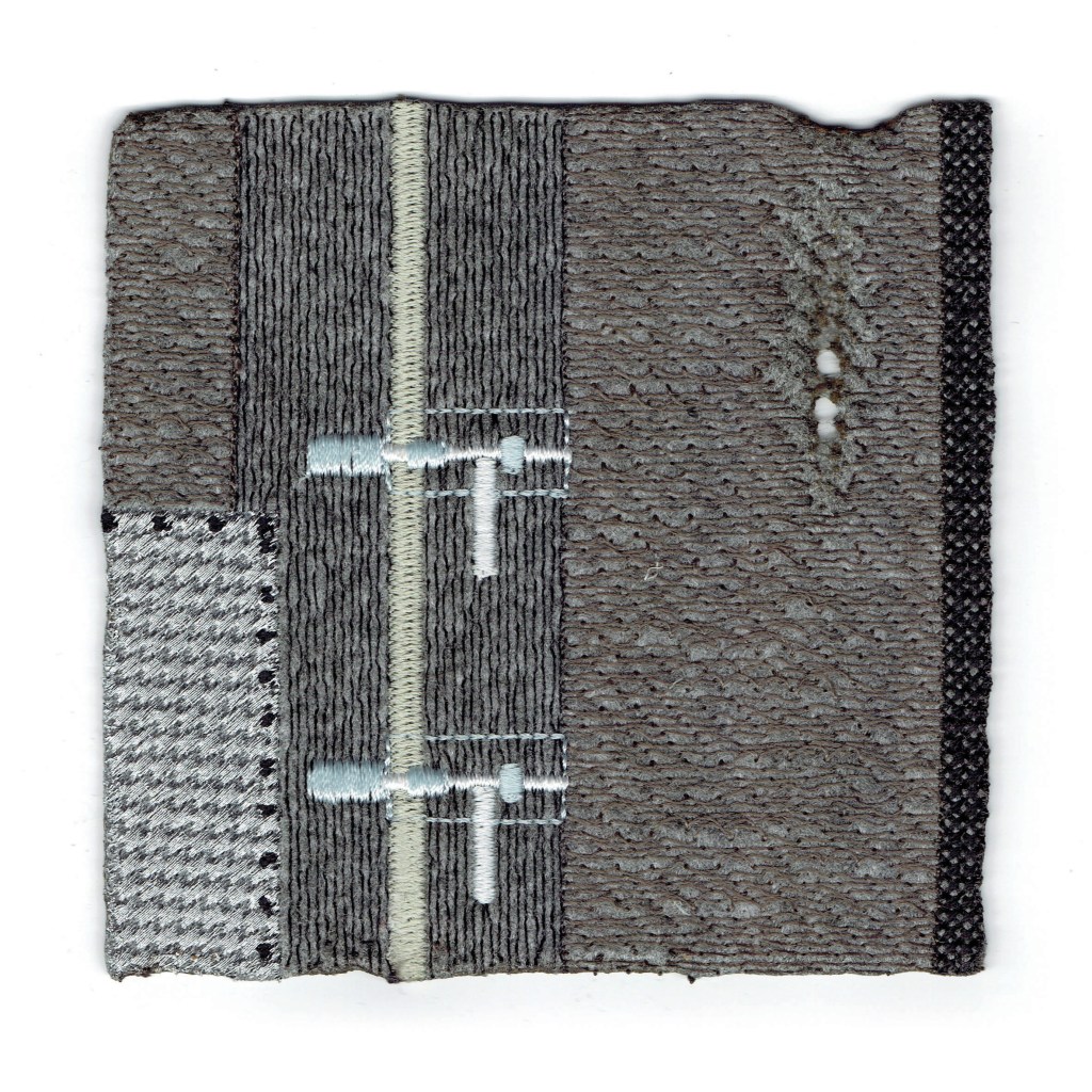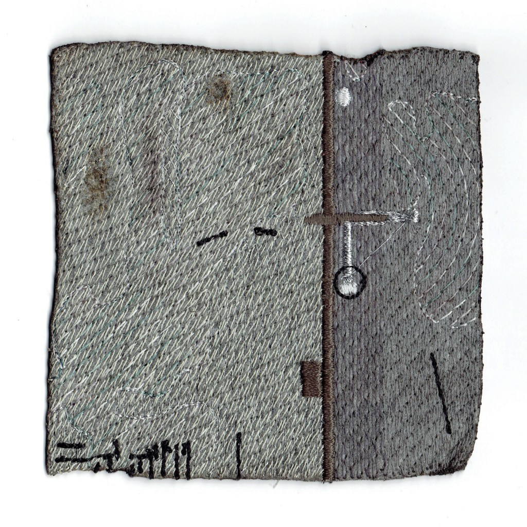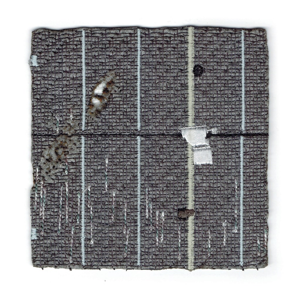 is a series of miniature textile works exploring memory, loss, and traces of destruction embedded in material. Using felt as a fragile yet resilient ground, the works combine machine embroidery with burning, allowing precise structures to collide with acts of erasure and damage. Each small-format piece functions as a fragment – an intimate record of a place that no longer exists in its original form.