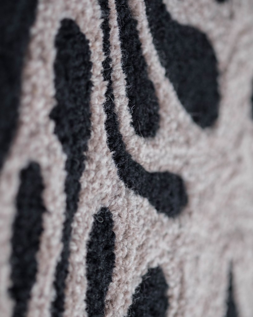 The project was conceived as an experimental and process-based collaboration. The exchange of ideas and continuous testing of different solutions throughout the making process enabled a meeting of two distinct authorial languages and disciplines. An important aspect of the work was also the experimentation with form and relief through the manual trimming of the rug’s pile, which introduced an additional spatial dimension to the object.